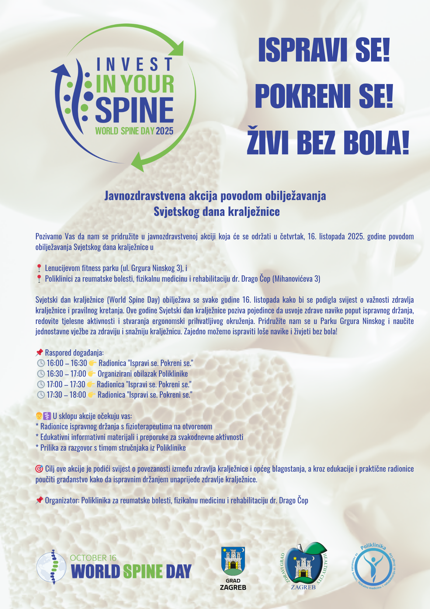 Gradskog ureda za socijalnu zaštitu, zdravstvo, branitelje i osobe s invaliditetom obilježava Svjetski dan kralježnice.
